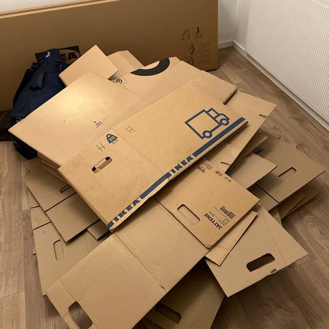 Solide og store pappesker. God til oppbevaring og flytting (obs - ikke håndtak). Har ca 20 stk.