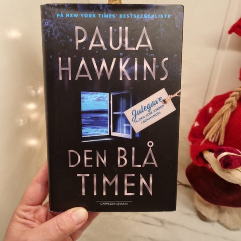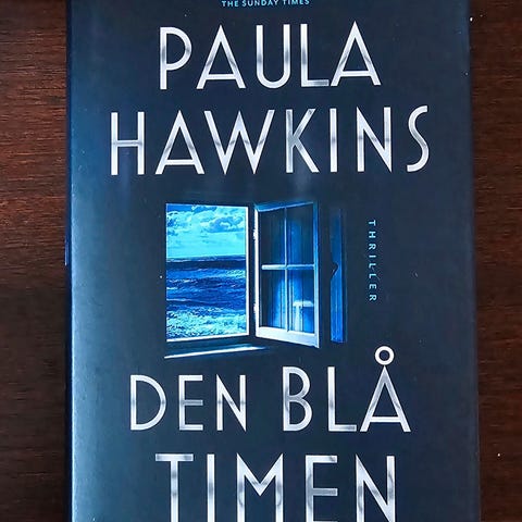 Paula Hawkins Den blå timen er en bok med svart omslag og blå detaljer. Den tilhører sjangeren roman.