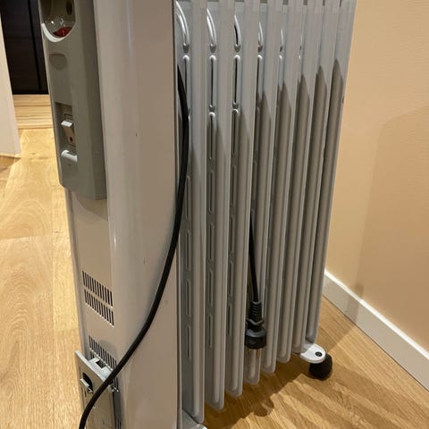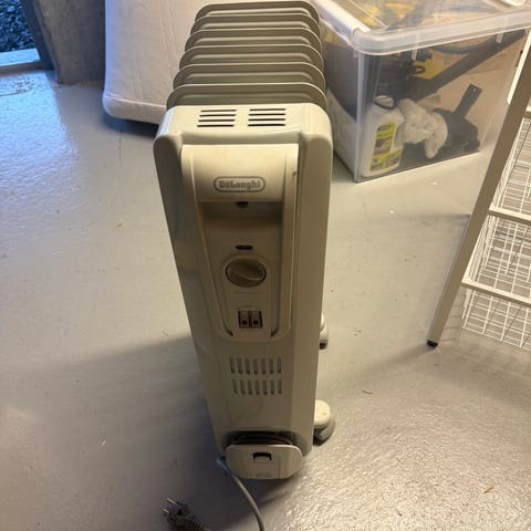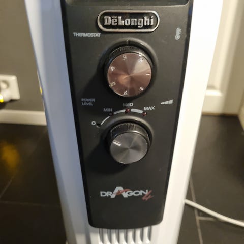 DeLonghi Rapid 7 oljeovn i hvit farge. Modellen har flere varmeinnstillinger og hjul for enkel forflytning. Produktet er beregnet for oppvarming av rom og har elektrisk drift.