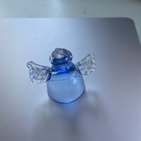 Selger 2 stk blå glassengler fra Hadeland Glassverk Engel. Til å for eksempel henge på juletreet. Kun brukt et par ganger. 5,5 cm høye. Design av Maud Bugge