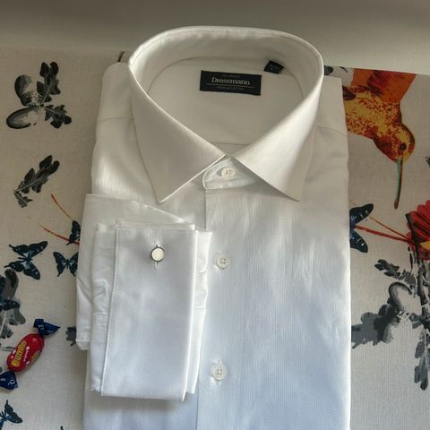 Kjøpt uprøvd da jeg tidligere har hatt smokingskjorter fra Dressmann i S. De har siden endret størrelsene sine, og derfor legges skjorten ut for salg.