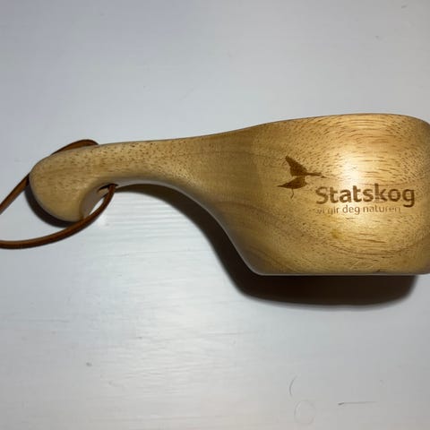 Lommelerke i tre til fisketuren med motiv av en fisk inngravert.