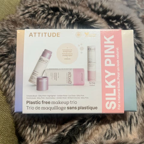 Attitude Oceanly Eye Makeup Kit med øyemakeup-produkter. Inneholder produkter for øyemakeup, egnet for daglig bruk. Pakken inkluderer en øyemakeup-base og to øyenskygger i nøytrale farger.