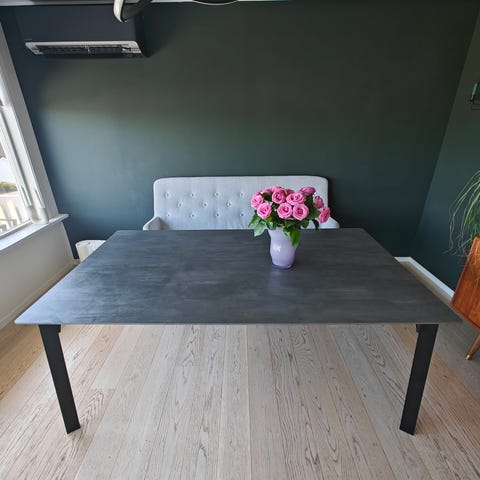 Bordet er 220 cm langt i den minste konfigurasjonen, og kan trekkes ut til 266 cm med ileggsplaten som ligger lagret i et praktisk rom under bordplaten.