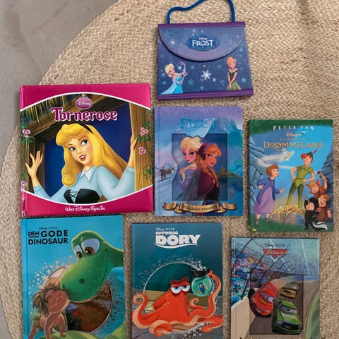 Disney Rapunzel og Frost barnebøker med ulike historier fra de populære filmene. Passer for barn som liker eventyr og animasjonsfilmer. Bøkene har fargerike illustrasjoner og er laget i standard bokformat.