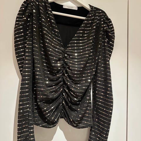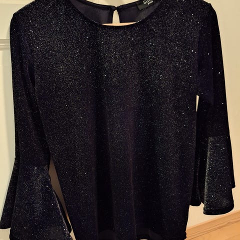 Selger denne fine glittertoppen da den ikke blir brukt. Den mangler belte som hører til men ser fortsatt fin ut uten! Originalpris er 549kr.