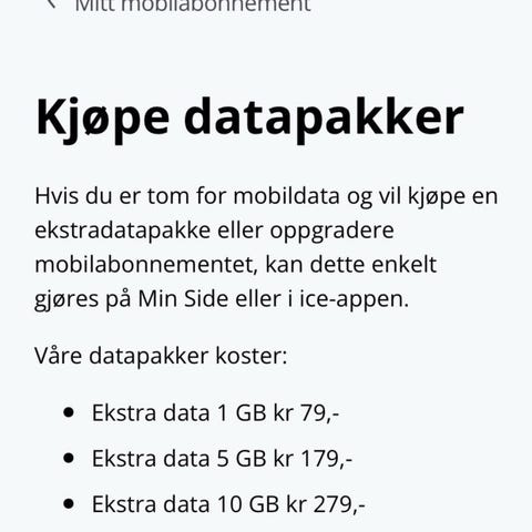 Har ice data til overs. Du må ha ice abonnement mellom 2 og 60 GB. Ikke iceJunior eller iceMax.