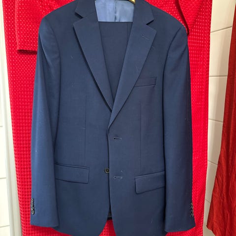 Dress i størrelse 44 for herre. Jakken er svart og laget av polyester. Passer til formelle anledninger eller daglig bruk.