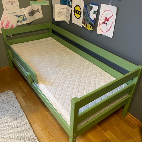 Hoppekids sengehest i hvitt tremateriale. Passer for barn og er designet for å gi en trygg og komfortabel soveplass.