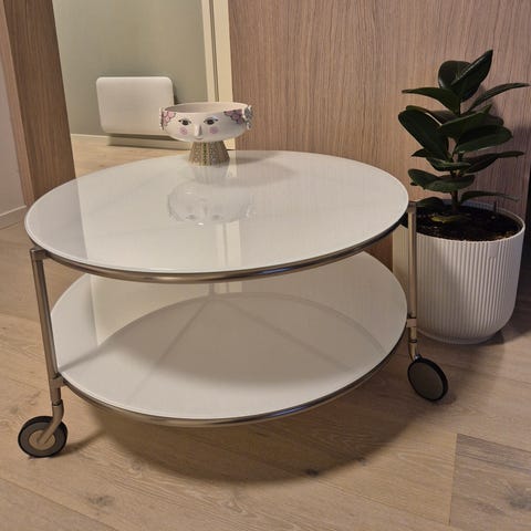 Bord trillebord pynt stue flytte hjul glassbord metall