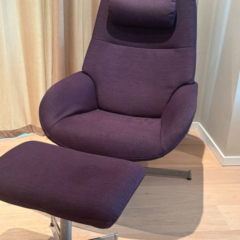 Kebe Lotus lenestol i skinn/eik med fotskammel