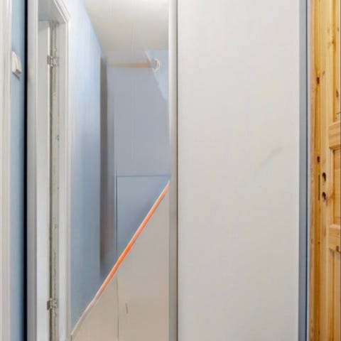Pent brukt skyvedørsgarderobe selges. Et skruehull på venstre kortside siden den har vært skrudd fast i veggen.