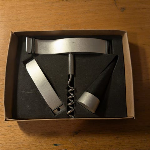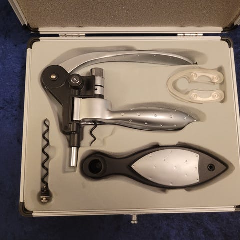 ekstra korkskrue og en spesialkniv for fjerning av flaskens forsegling.