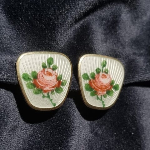 Ingen avskall i emaljen, derimot et felt på den ene der de har malt det røde litt utenfor ( Fra produksjonen) Ikke noe man ser da de er i ørene, jeg har jo kjøpt de og ikke sett det før nå!