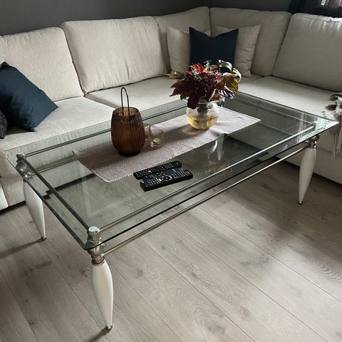 Sidebord/småbord fra IKEA i hvit farge med glassplate. Noen få lette bruksmerker, kan fint males over. Bordet er nylig malt i fargen Tudor. Må hentes:-)