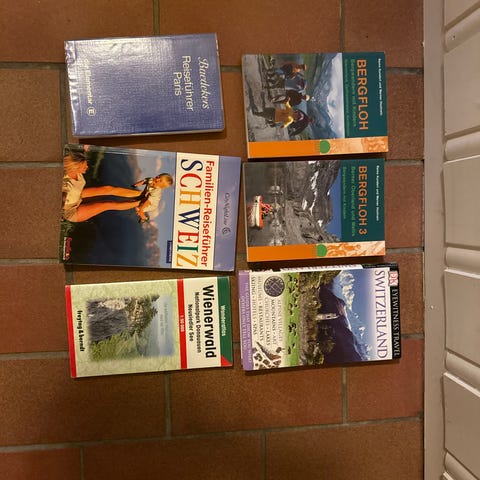 Guide Book Reiseguidebok sett med åtte forskjellige byer: Paris, Lissabon, Stockholm, Barcelona, Venezia, Toscana og to utgaver av Venezia. Bøkene inneholder informasjon om attraksjoner, kultur og reisetips for hver by.