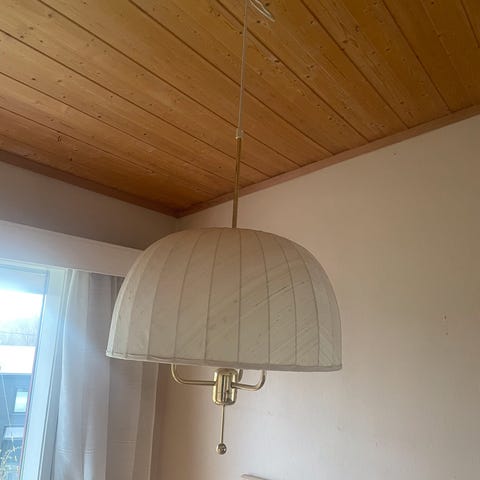 Lampene har blank ledning og støpsel. Ledningen fra lampe til støpsel har gulnet noe, men ledningene gen som holder lampehodet er like blank og fin.