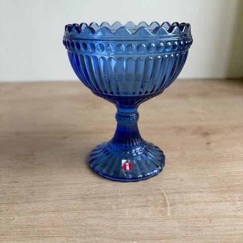 Marimekko Iittala Mariskooli glasskål i klart glass med dekorative mønstre og bølgete kant. Passer til servering eller dekorasjon.