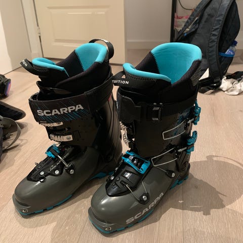 Skallet er bra og skiftet hengsler på spenner. Gåfunksjonen bak på skoen er skiftet til ny fra Scarpa og er superholdbar og meget funksjonell.