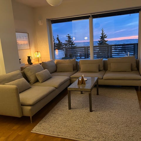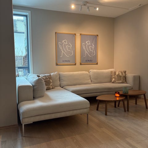 Pent brukt søderhamn sofa. Stått i tv-stue. Noen bittesmå ubetydelige flekker, går helt sikkert bort i vask.