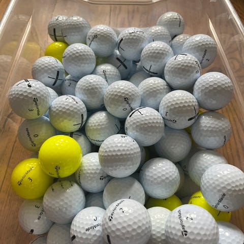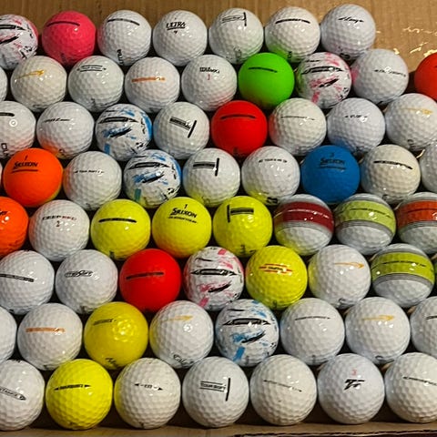50 Taylormade distance+ golfballer i perfekt og nesten perfekt stand. Lite bruksmerker og tusjmerker. Mye farger, perfekt for den mørkere sesongen. Selges til 350kr pluss eventuell frakt.