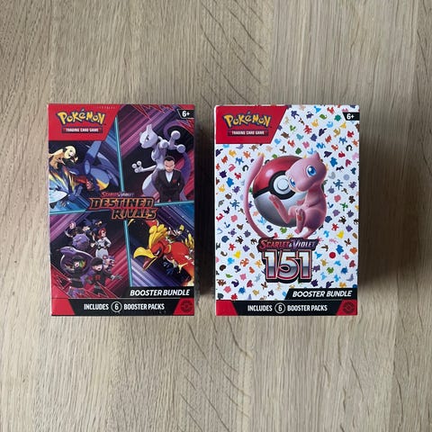 Destined rivals og mega evolutions booster bundle selges samlet for 1500 kr.
