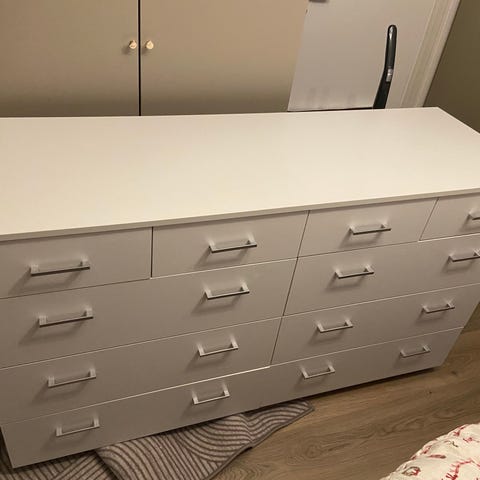 Den ene kommoden har en liten skade i bunnen av nederste skuff. Dette er tatt hensyn til i prisen.