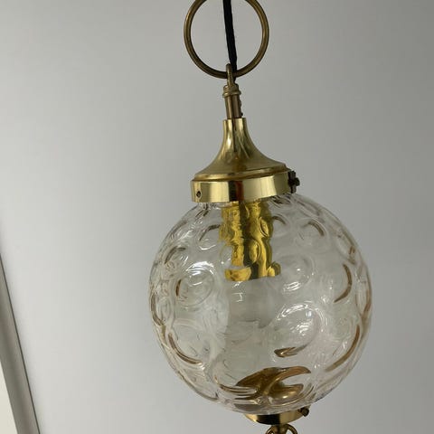 Artig 60talls taklampe i metall og plast. 32 cm diameter og ca 24 cm høy. Sprer lyset på en flott måte og har vært i bruk inntil nylig.