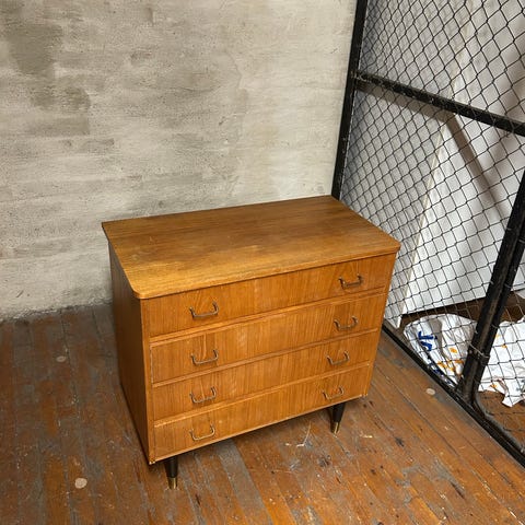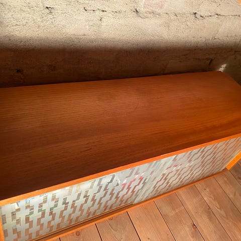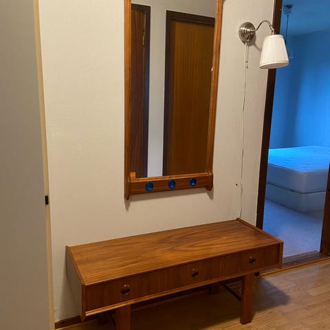 Teak-kommode /skatoll. Små bruksmerker, litt ødelagt inni den ene hylla.(syns ikke uten å titte inn i hylla)