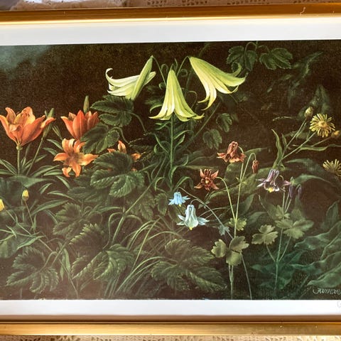 Struktur i perlemor og glitter. Maleriet er nærmest selvlysende og må oppleves. Bør rammes i passpartout og glass som grafikk. Kan også være et stående objekt sånn det er.