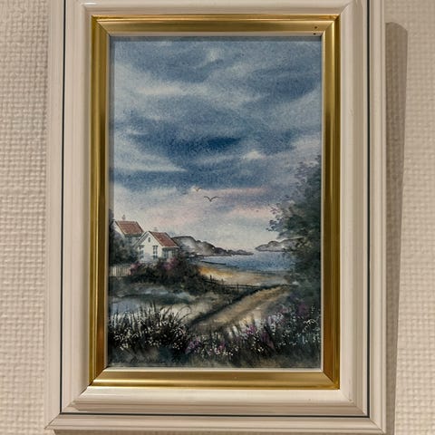 Fire små bilder årstider malt på tre. Signatur kunstner bak på ene bilde.