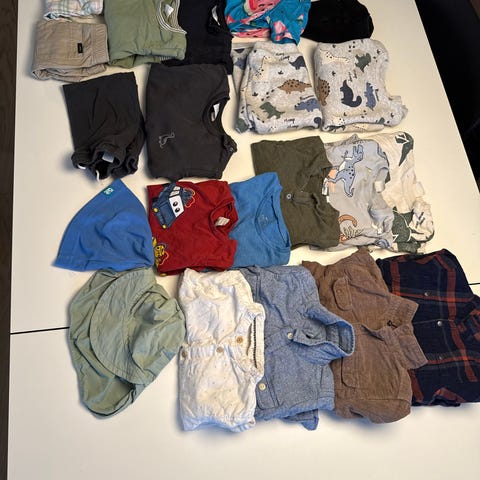 Pent og lite brukte skjorteri str 74. 11 stk hvor av en av dem er en body og to av dem er body med skjorte og sløyfe. Perfekt for nyttårsaften og selskap:)