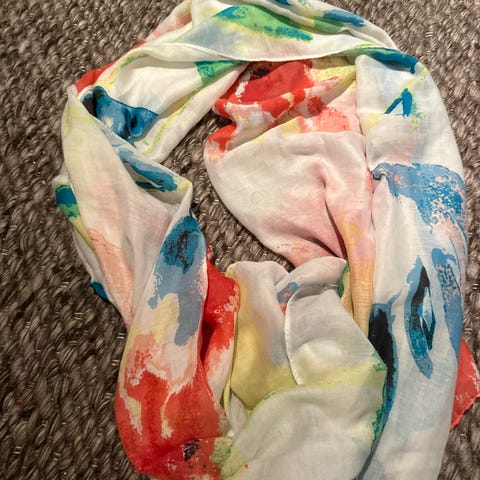 Nydelig skjerf fra Rosenvinge i paisley mønster. Farge beige med burgunder.