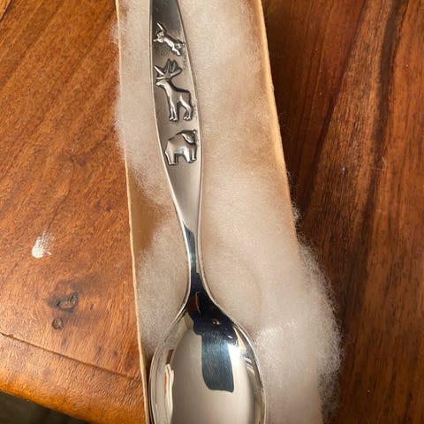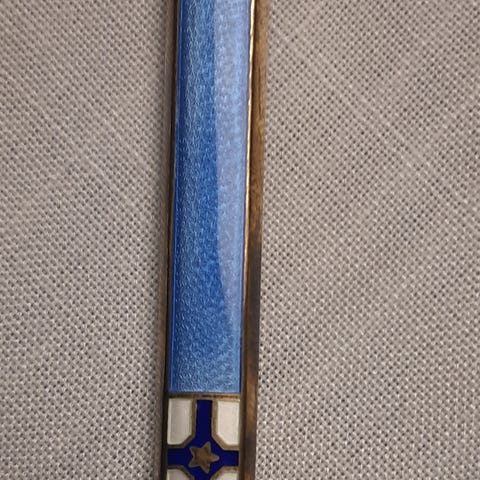 Norge dekorativ skje i sølv med blå og hvit emalje