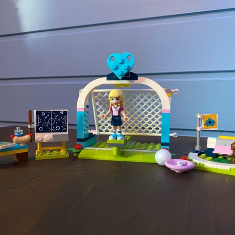LEGO Friends lekesett med tema målskyting og basketball. Inkluderer flere små konstruksjoner for lek med froskespill, målskiver, basketballkurv med basketball, og en minifigur.