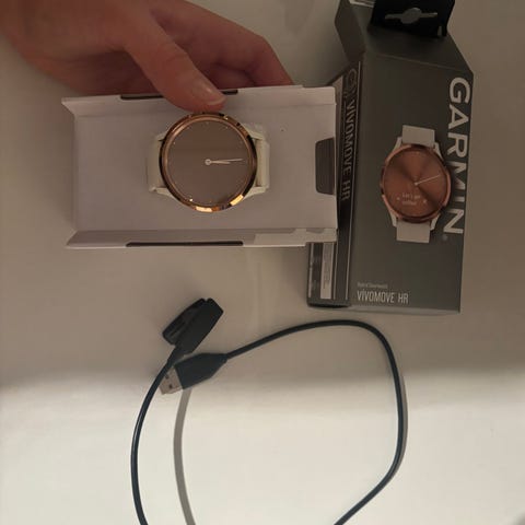 Pent brukt Garmin Vivomove Trend hybridklokke selges uten lader. Den kan lades trådløst på ladeplate. Den er kjøpt på Elkjøp 30. juni 2025. Den er fullpakket med funksjoner, samtidig som den beholder det elegante og lavmælte utseendet til en vanlig klokke. LCD-displayet ligger fint bak de analoge viserne, slik at du kan se hva klokken er uten å måtte aktivere LCD-en. Klokken hjelper deg med å analysere din egen helse takket være måling av puls, Body Battery, oksygenmetning og stress gjennom hele dagen. Ved å pare enheten med Garmin Connect-appen får du tilgang til massevis av detaljer og grafer om din helse. Du kan også dra nytte av smarte varsler og betale med Garmin Pay-funksjonene. Les mer her: https://www.elkjop.no/product/mobil-nettbrett-og-smartklokker/smartklokker/garmin-vivomove-trend-hybridklokke-creampeach-gold/582504?utm_source=google&utm_medium=cpc&utm_campaign=NO%20-%20Shopping%20-%20AO%20-%20TELE%20-%20Branded&utm_id=415834568&gad_source=1&gad_campaignid=415834568&gbraid=0AAAAAD-SSgTN5OWr3sbC85i_7XmuyQGKO&gclid=EAIaIQobChMI7-uep4ngkQMV_IX9BR304RLHEAQYASABEgLdsfD_BwE#description