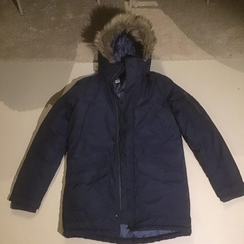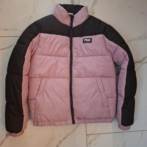 Fila boblejakke i størrelse 44 for menn. Høy gutt 16 år har brukt den. Jakken er svart og laget av polyester. Designet for å gi varme og komfort. Vokste fort ut av den så nesten ikke brukt.