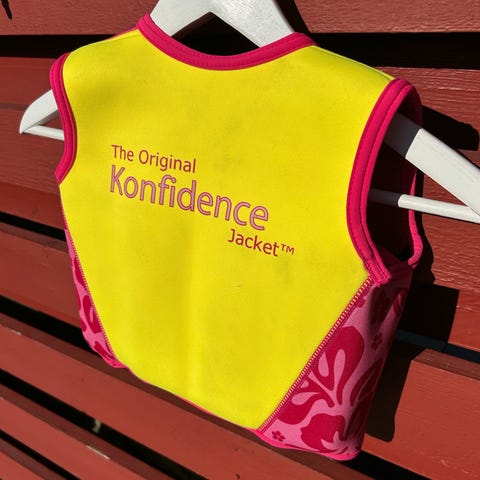 CRUZ Flytevest for barn i alderen 3-6 år, laget av rosa neoprengummi. Vesten er designet for barn med vekt mellom 18-30 kg. Den har justerbare stropper og frontglidelås for enkel påkledning. Flytevesten har et fargerikt enhjørningmotiv på baksiden.