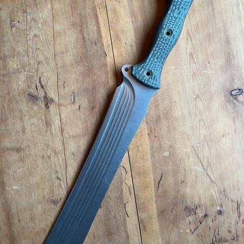 En real turkniv som takler alt, men mye kulere enn en samekniv. Spor til å løfte kaffekjelen av bålet.
