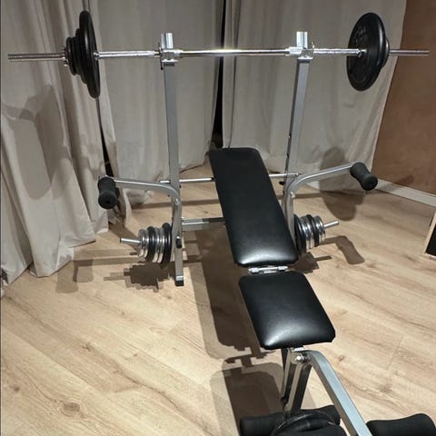 Vektstang og manualstang med tilhørende vektskiver fra York