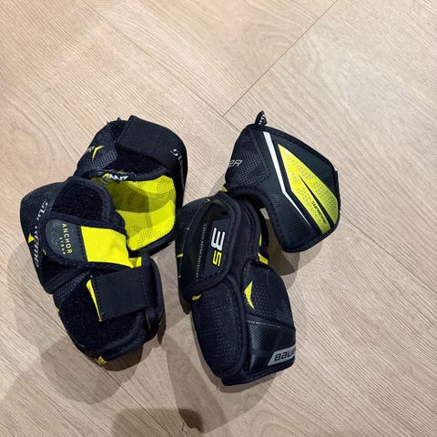 CCM Senior hockeybeskyttelse med størrelse medium Beskyttelsen inkluderer benskinner, og hansker i svart farge. Utstyr laget for seniornivå og designet for å gi beskyttelse under bandy.