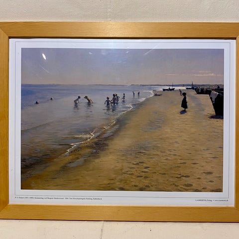 Vakkert kunsttrykk av det ikoniske motivet «Sommeraften på Skagen Sønderstrand» (1893) av P.S. Krøyer, en av de mest kjente Skagen-malerne.