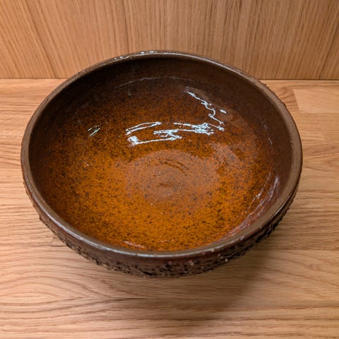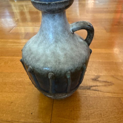 En ganske spesiell vase I tung keramikk. Usikker på opphav men er flott med ansikter i brune og grønlige nyanser. Tips til hvem som har laget den mottas med takk! Ny eller gammel? Ca 14 cm høy og 14 cm på det bredeste.