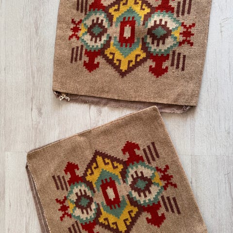 Pute i lys ecru ullstoff med broderi