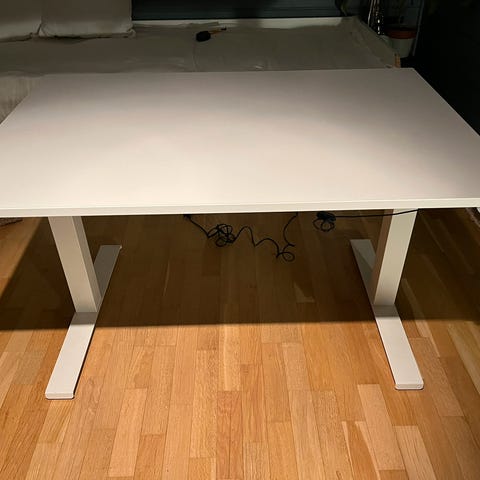 Skrivebordet er stabilt og lett å justere i høyden. Justerbar høyde. Det demonteres enkelt og kan hentes etter avtale. Jeg har vært veldig fornøyd med det, men selger det nå grunnet jeg fikk et nytt bord.