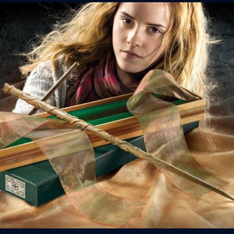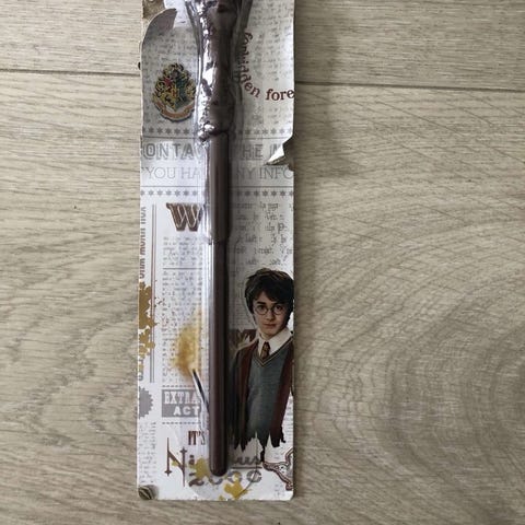 Harry Potter tryllestav med etui i rød fløyel. Tryllestaven er svart med detaljer og leveres i en matchende rød eske. Lengde ca. 35 cm.