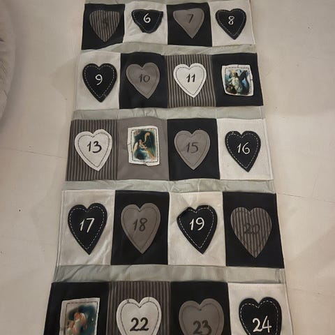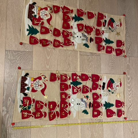 Julekalender med oppheng, 24 st små ringer til at feste pakker til