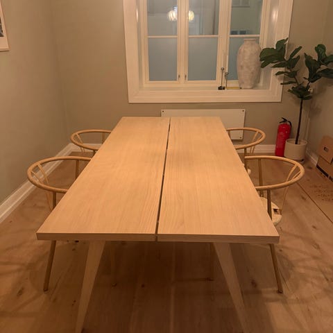 Mål bordplate: 180 x 90 x73 cm + 2 x 50 cm innleggsplater.
