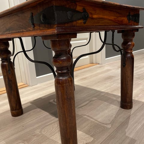Kjøpt brukt og gis bort da vi skal kjøpe nytt stuebord. Pent bord i mørkebrun trefarge. Bordet må hentes.