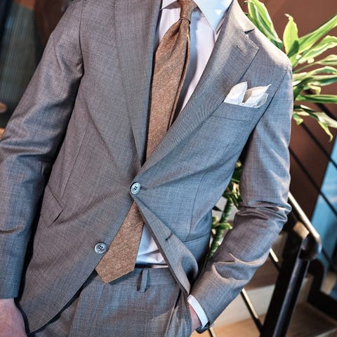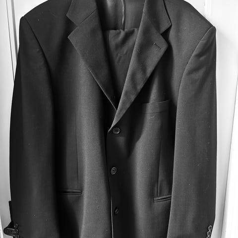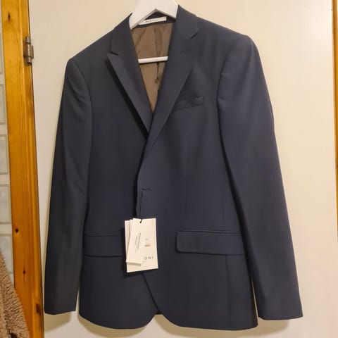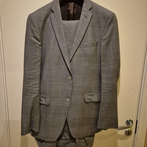 Selger en knapt brukt blazer av merket Bertoni. Svakt rutet mønster og skinnlapper på ermene.